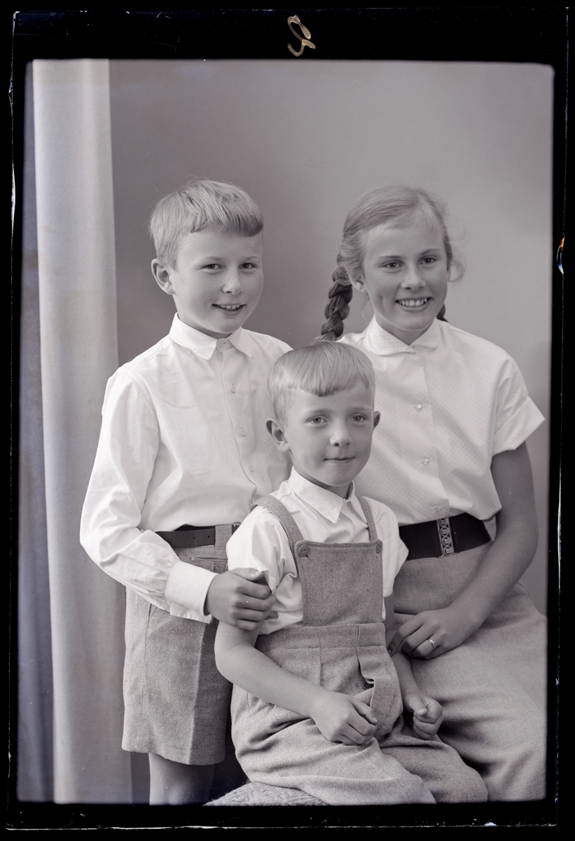 Enligt fotografens journal nr 8 1951-1957: "Berntsson, Helena, Göran o Lars Prästgården, Svanesund".