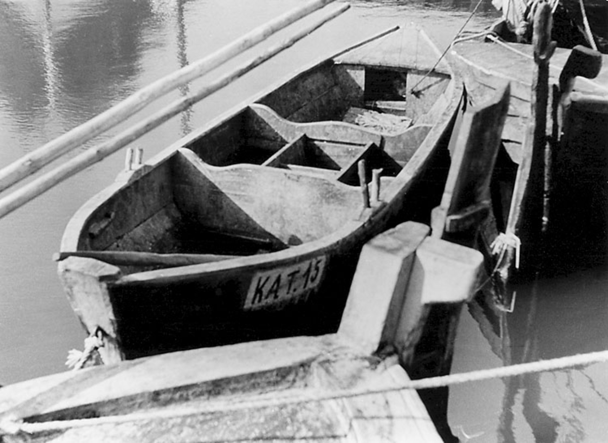 Skrivet på baksidan: "Bodenplankenboot mit "pommerellischen" Innenleven (?). Lomm v. Frischen Haft 10 dps (?)."