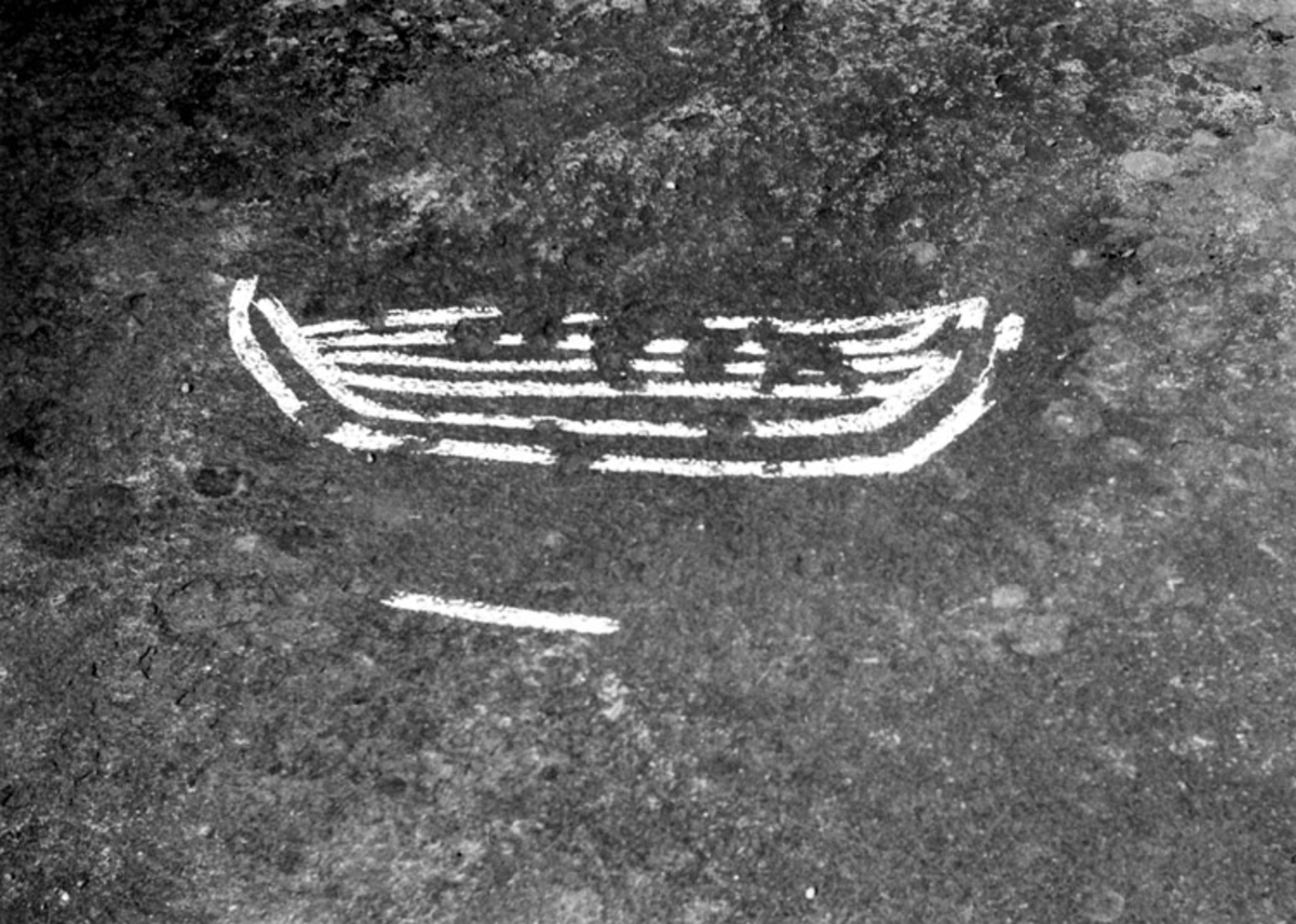 Hällristning av båt med klink-bordläggning. Fornminne nr. 259