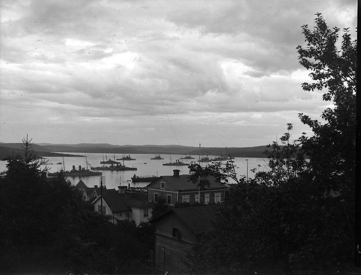 Enligt tidigare noteringar: "Vy över fjord med krigsfartyg."
