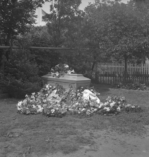 Text till bilden: "Kista med blommor. Högströms. Slätten. 1948.06.19"
