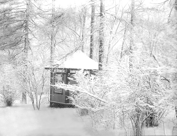 "Lusthuset i snö." Kasens herrgård, Uddevalla i mars 1898.