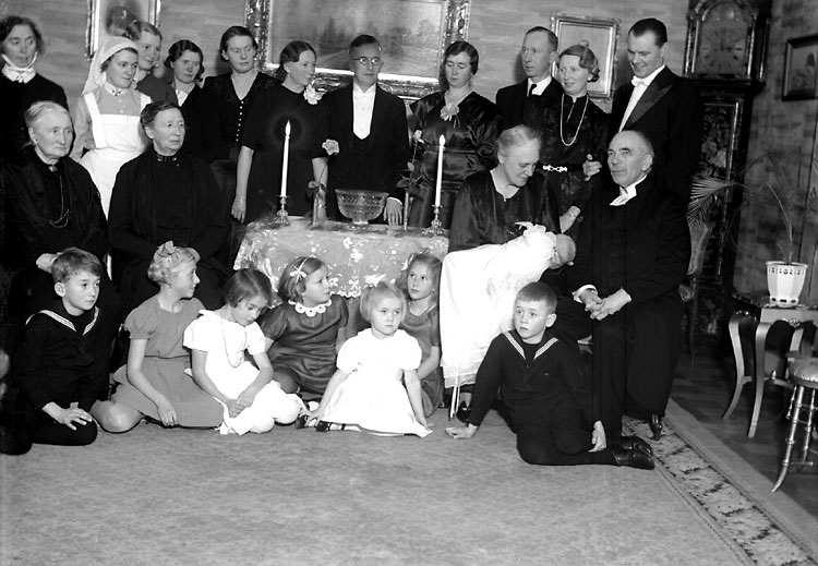 Enligt senare noteringar: "Barndop, troligen i Foss. Tredje man från höger ser ut att vara handelsman Henrik Hansson, Munkedal." (BJ)