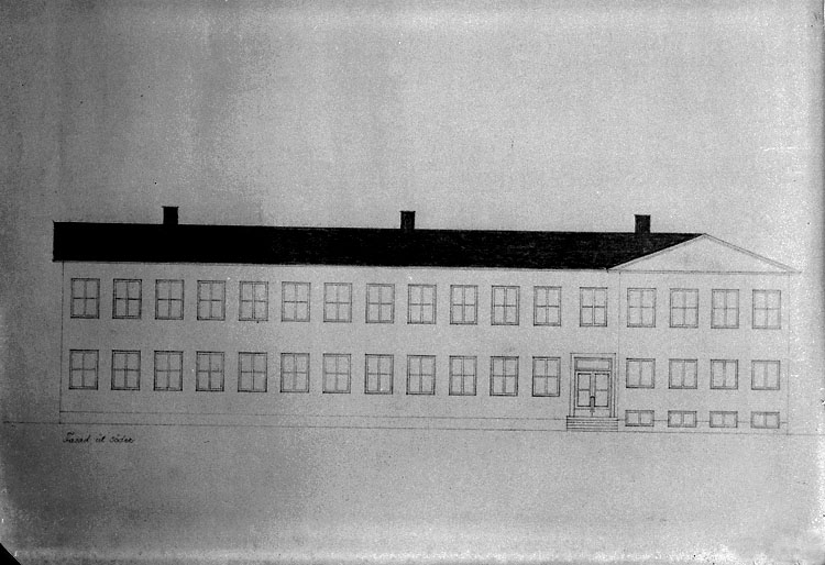 Enligt noteringar: "Avfotograferad skiss på skolbyggnad, troligen tänkt nybyggnad vid Munkedals Centralskola." (BJ)