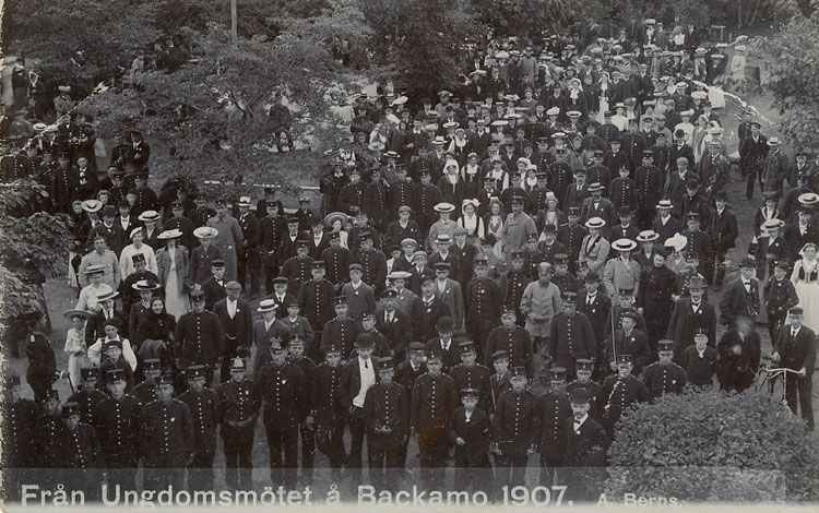 Enligt Bengt Lundins noteringar: "Från Ungdomsmötet å Backamo 1907. Samling vid dansbanan".