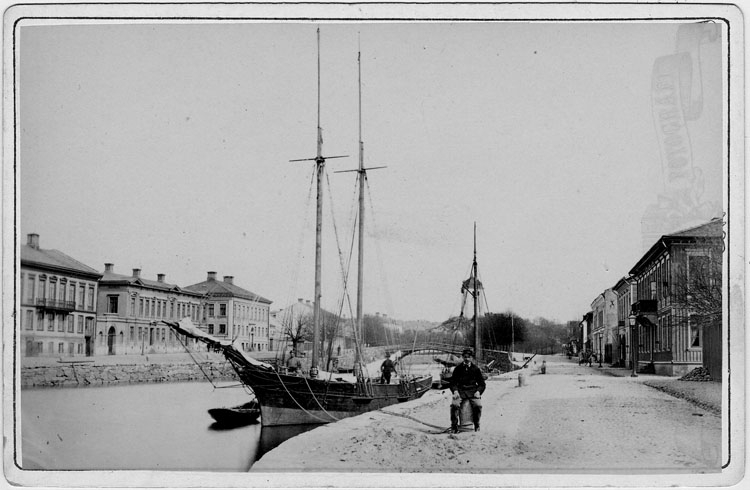 Enligt text skrivet på kopian: "Hamnen väster stenbron, Uddevalla, omkr. 1880".
