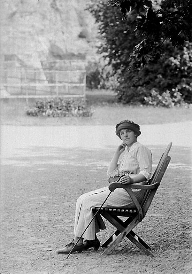 Enligt senare noteringar: "Kvinna i trädgårdsstol." (BJ)
