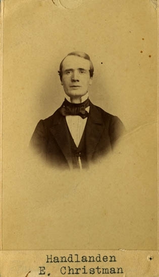 Text på kortets baksida: "Handlanden Emil Cristman, Karlstad".