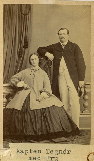 Text på kortets baksida: "Kapten Gustaf Henric EsaiasTegnér och fru Louise f. Proschwitz. F. 1836. Fullm. 1861 juli 5. Boh. reg.".