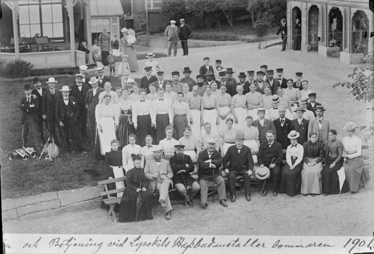 Enligt text som ristats i emulsionen: "... och Betjäningen vid Lysekils badanstalt sommaren 1901."