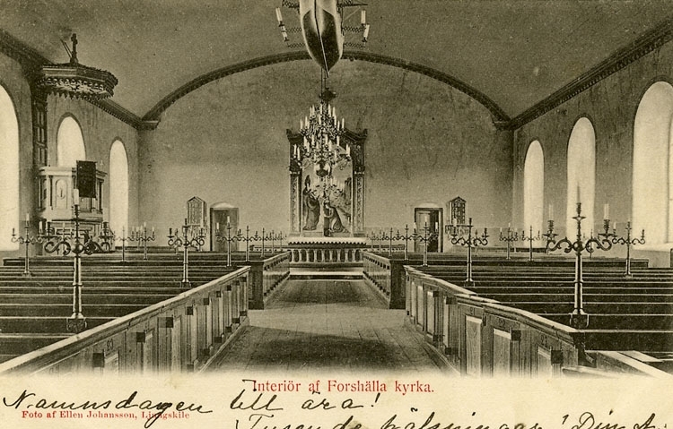 Enligt Bengt Lundins noteringar: "Interiör af Forshälla kyrka".