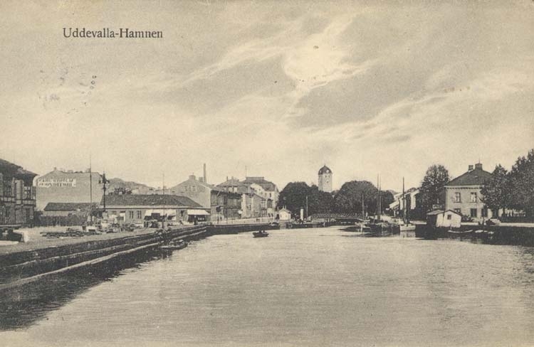 Tryckt text på kortet: "Uddevalla. Hamnen."