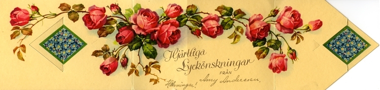 Notering på kortet: Hjärtliga Lyckönskningar från Amy Andersson.