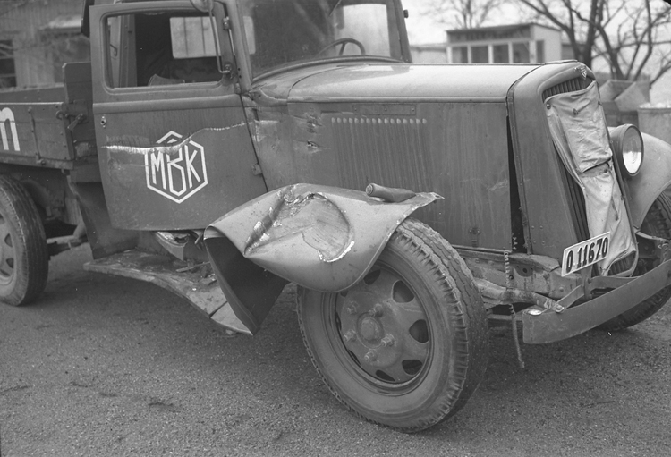 Text till bilden: "Kollission. N. Hamnen .1949.12.14"