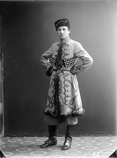 Enligt senare noteringar: "Ateljéfoto av skådespelare i rolldräkt, operett."