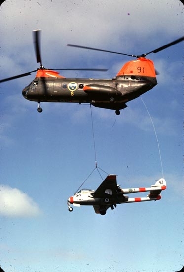 Försvarets nyinförskaffade helikopter Boeing Vertol Hkp 4A - förevisning någonstans i Skåne