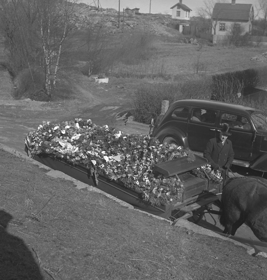 Text till bilden: "Begravning. Freds, Nalbogatan. 1949.04.09"