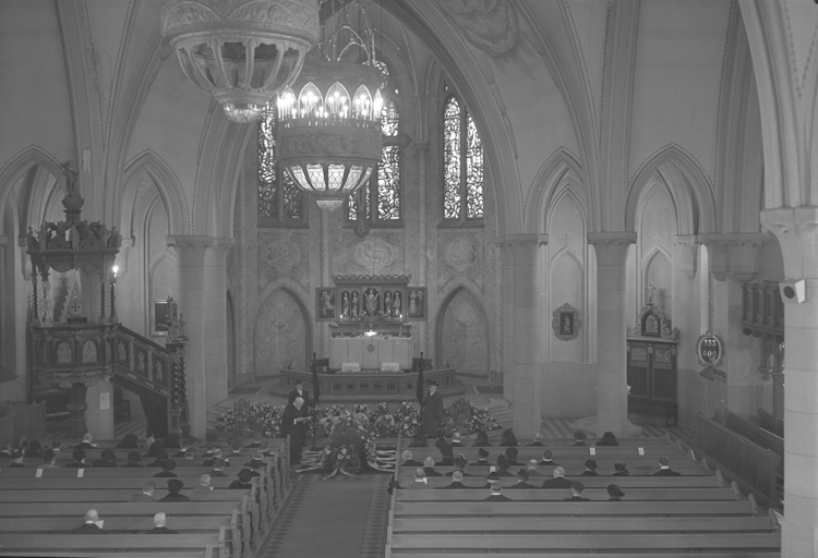 Titel: Text till bilden: "Fru Elise Johanssons begravning. 1952.03.23" i