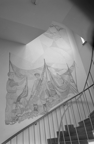Titel: Text till bilden: "Konstnären G. Fougstedt. Ulrikedal. Målar vägg. PLM. 1952.11" i