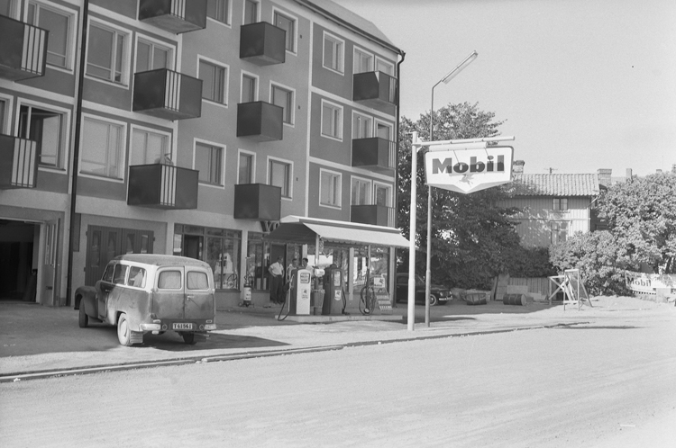 Text till bilden: "Bensinstationen Mobil. Fotografering av sju bensinstationer i Lysekil. Beställare Svenska Gulf Oli Co. Södergatan 18 Uddevalla.