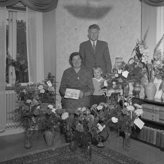 Text till bilden: "Fru Henriksson, Strandvägen 26. 50 år. 1956.09.22"
