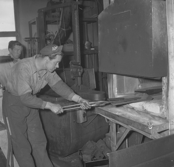 Titel: Text till bilden: "AB Verkstadsindustri Brastad. Interiör. 1953" i