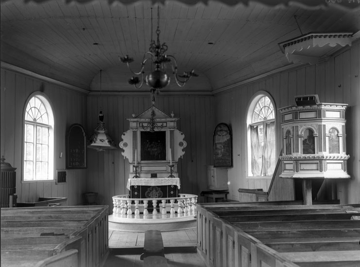 Enligt tidigare noteringar: "Interiör från Dragsmarks kyrkan, koret med altartavlan."