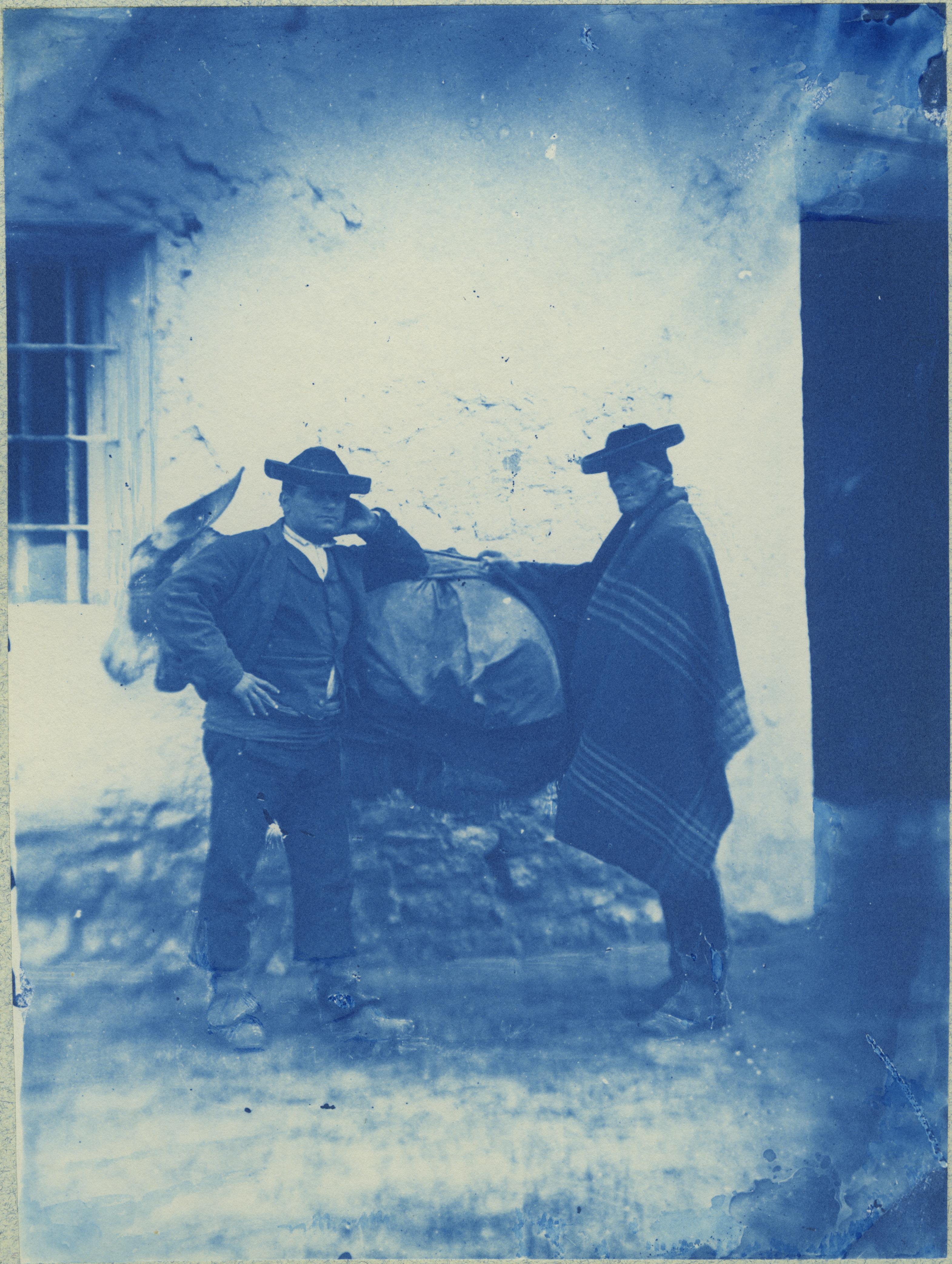 Två män och en åsna. Männen kommer troligen från provinsen Salamanca, på grund av sin klädsel. Fotografiet troligen taget i Andalusien.