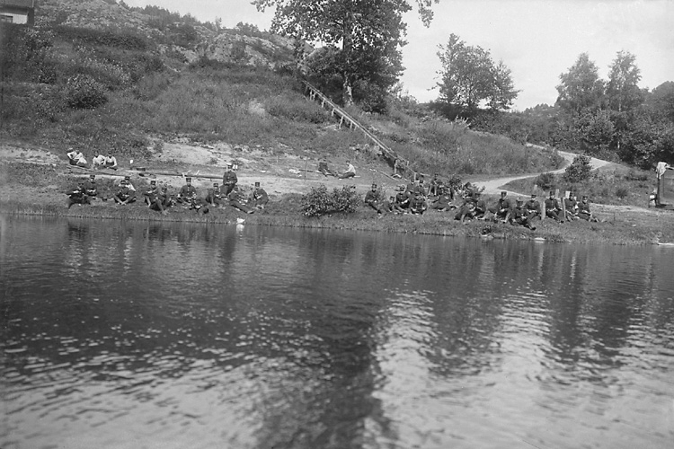Enligt tidigare noteringar: "Rastande militärer. Troligen vid Grinnerödsjön."