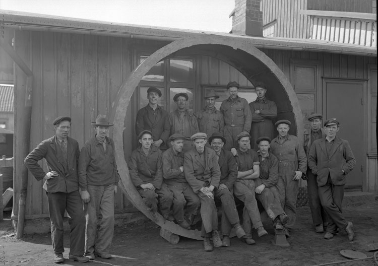Uppgift enligt fotografen: "Uddevalla. Mek. Verkstad. Gruppfoto av arb."