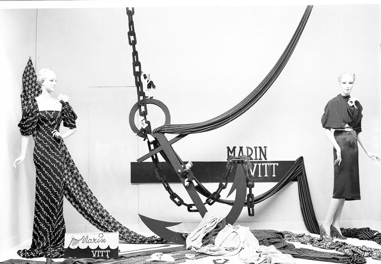 Skyltfönster hos dammodebutiken Jörnstedts, Uddevalla, sommarsäsongen 1939
