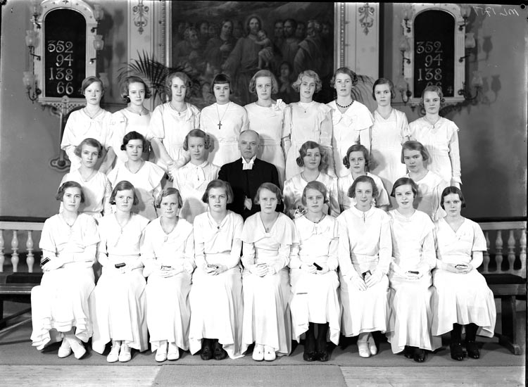 "Uddevalla. Konfirmander mindre grupp. Pastor Agner." uppger fotografen.