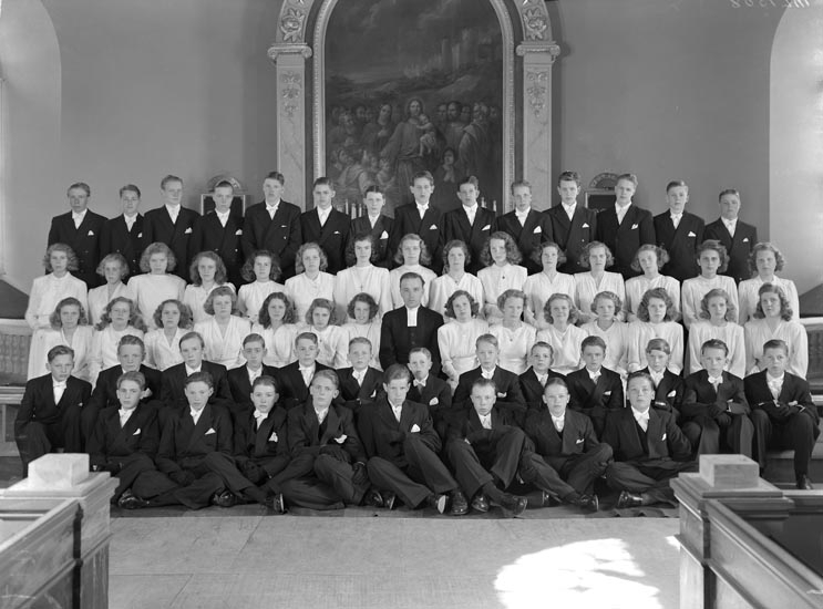 Uppgift enligt fotografen: "Uddevalla. Konfirmander. Pastor Långström."