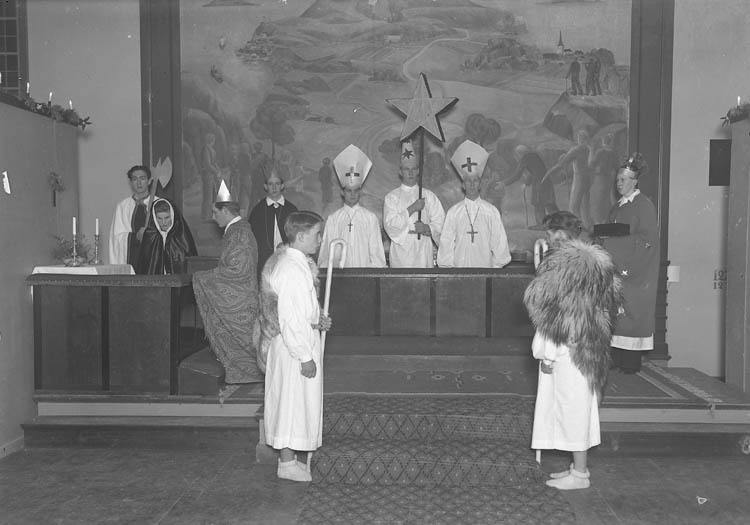 Text till bilden:"Religiöst spel med kungar, präster och fåraherdar".