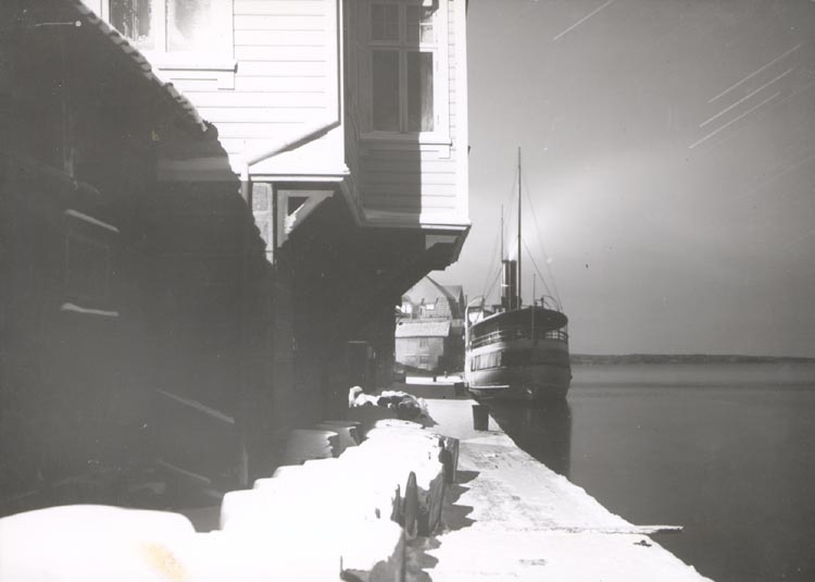 Noterat på kortet: "SMÖGEN". "S/S "BOHUSLÄN" ÖVERNATTAR I SMÖGEN EN VINTERNATT 1923".
