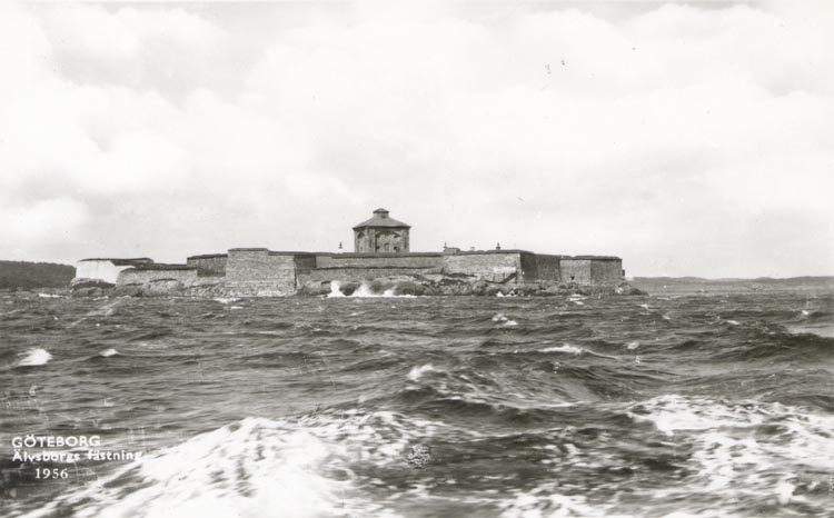Tryckt text på kortet: "GÖTEBORG. Älvsborgs Fästning 1956".