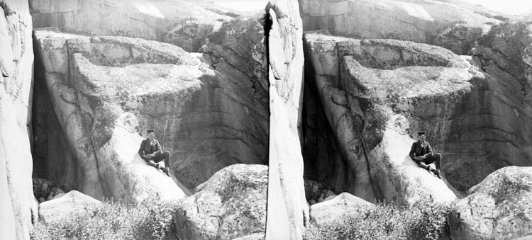 (Stereo karta VI) 19 Juli 1905 Strandgryta på S. Hålsön (pojken sittande).