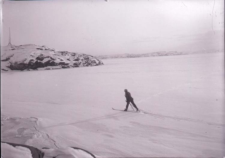 Enligt text som medföljde bilden: "Skidåkare på sjöisen feb/Mars 1917."
