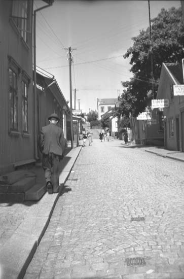 Text till bilden: "Prov med Gil box kamera. Lysekil, gata. 1940.07".