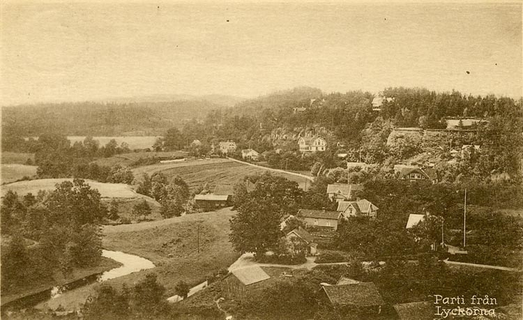 Enligt Bengt Lundins noteringar: "Parti från Lyckorna. Ån , Kvarnen, Corona".