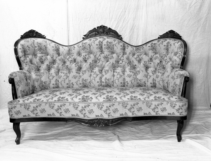 Text till bilden: "Soffa i 1870 tals rococo utförd av Åke Hedberg".