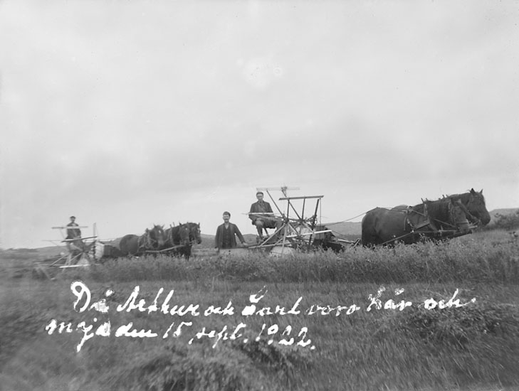 Enligt notering på foto: "Så Arthur och Carl var här och meja den 15 sept. 1922".