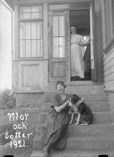 Enligt text skriven på glasplåten: "Mor och dotter 1921."