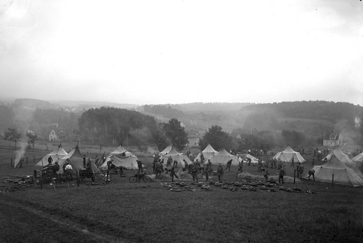 Text som medföljde bilden: "1938. 31. Fältmanöfver vid Möe Hagane. G. Dalqvist gård."