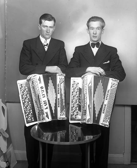 Text till bilden:"Två dragspelare. Karl-Gustav och Erik".