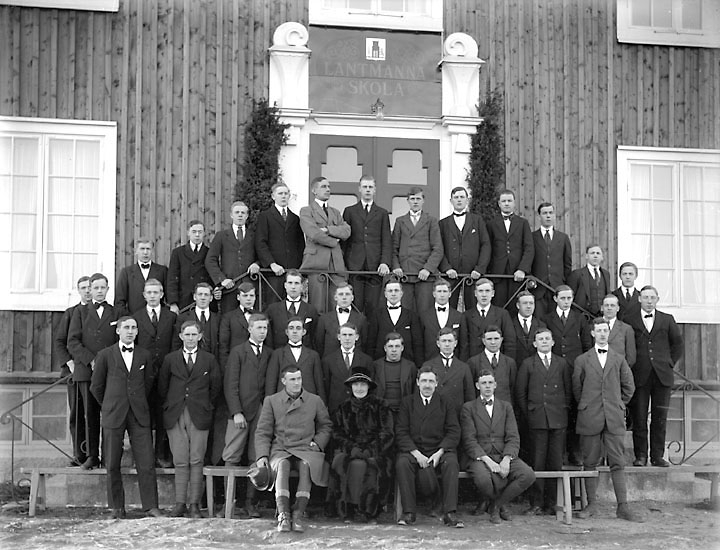 Enligt senare noteringar: "Lärare och elever på huvudbyggnadens trappa." (BJ)