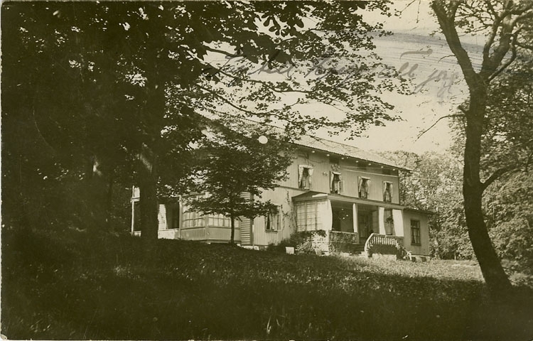 Enligt Bengt Lundins noteringar: "Hus med altan och markiser på sluttning mot ost".