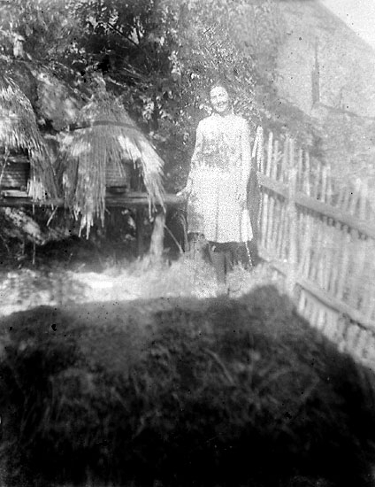 Enligt noteringar: "Kvinna vid bikupor."