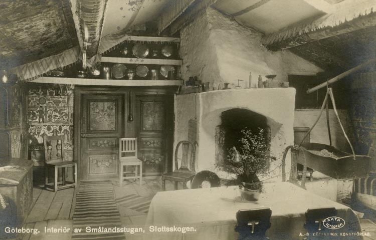 Notering på kortet: Göteborg. Interiör av Smålandsstugan, Slottsskogen.