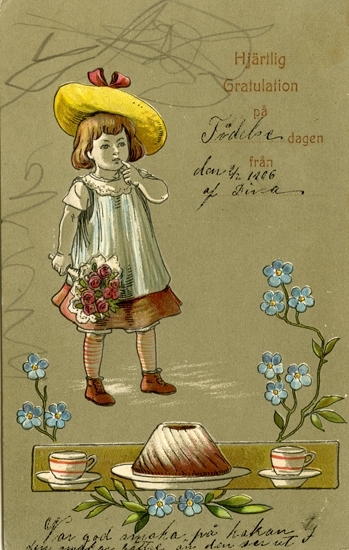 Notering på kortet: Hjärtlig Gratulation på födelsedagen från Dina.